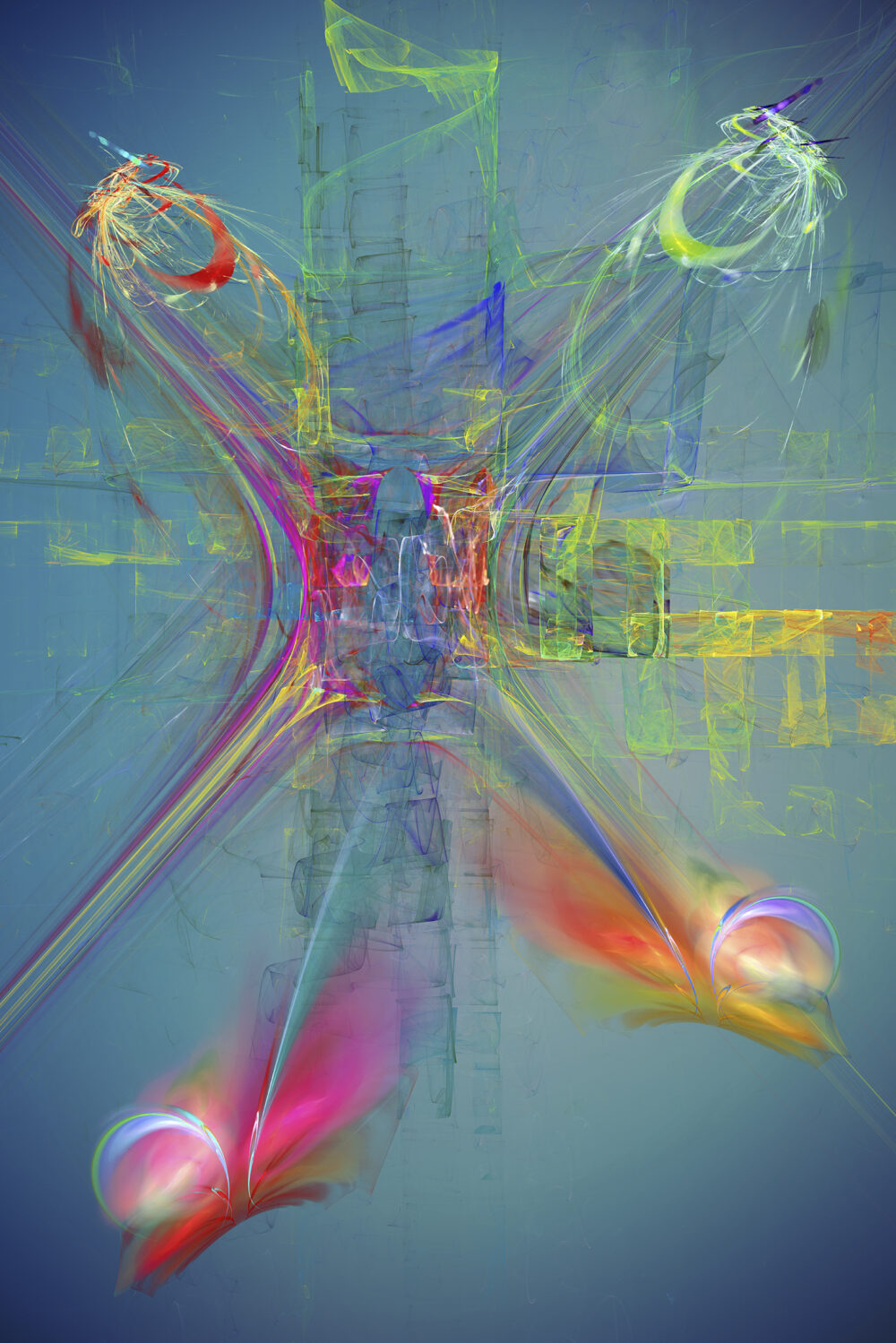 Das Bild "Aus dem Regenbogen" ist eine Komposition aus diversen digital erstellten Fraktalen. Für mich ist es ein Farbspiel des Regenbogens aus einer Wirbelsäule.