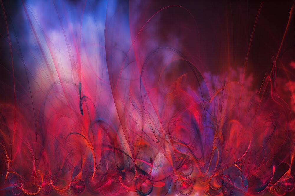 Das Bild "Polarlichter" ist eine Komposition aus diversen digital erstellten Fraktalen. Die Formen und Farben erinnern mich an einen Ausbruch. Das kann auch die Versinnbildlichung von einem Gefühlsausbruch sein.
